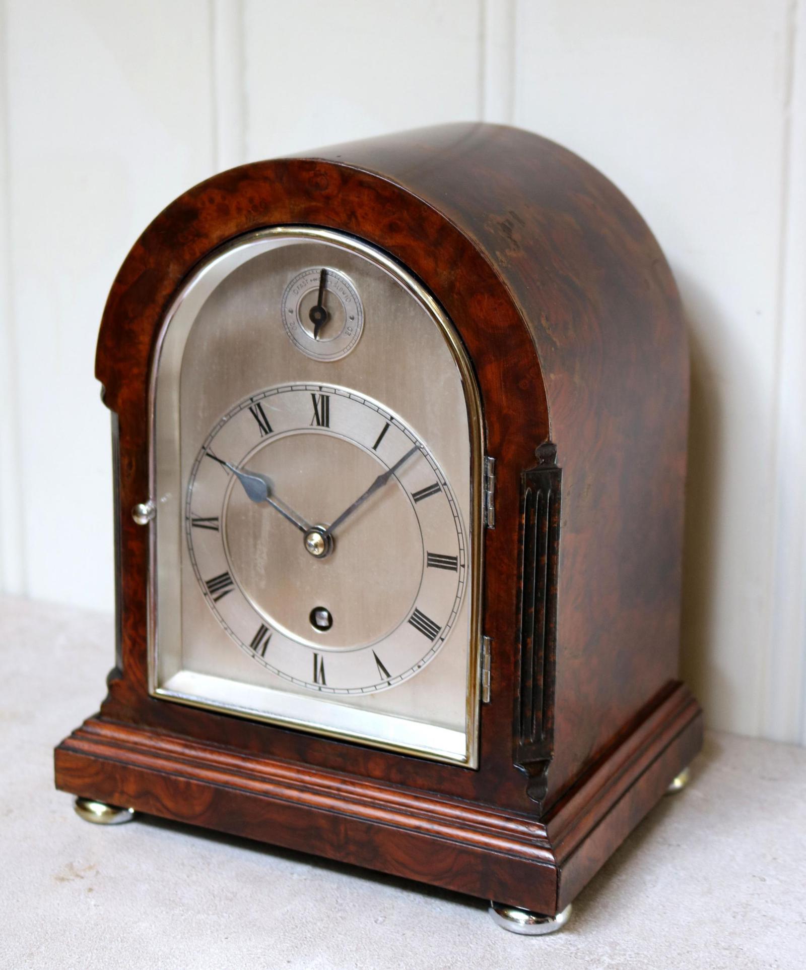 Burr Walnut Arch Top Bracket Clock