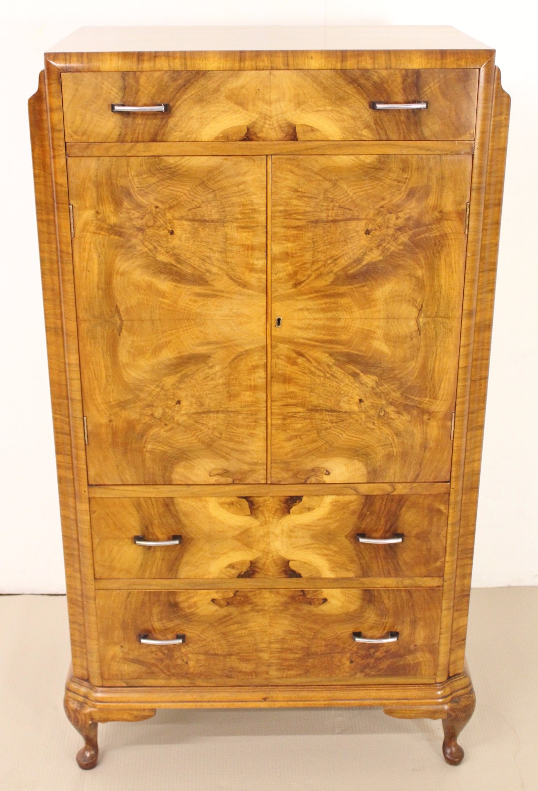 Burr Walnut Art Deco Linen Press (1 of 1)