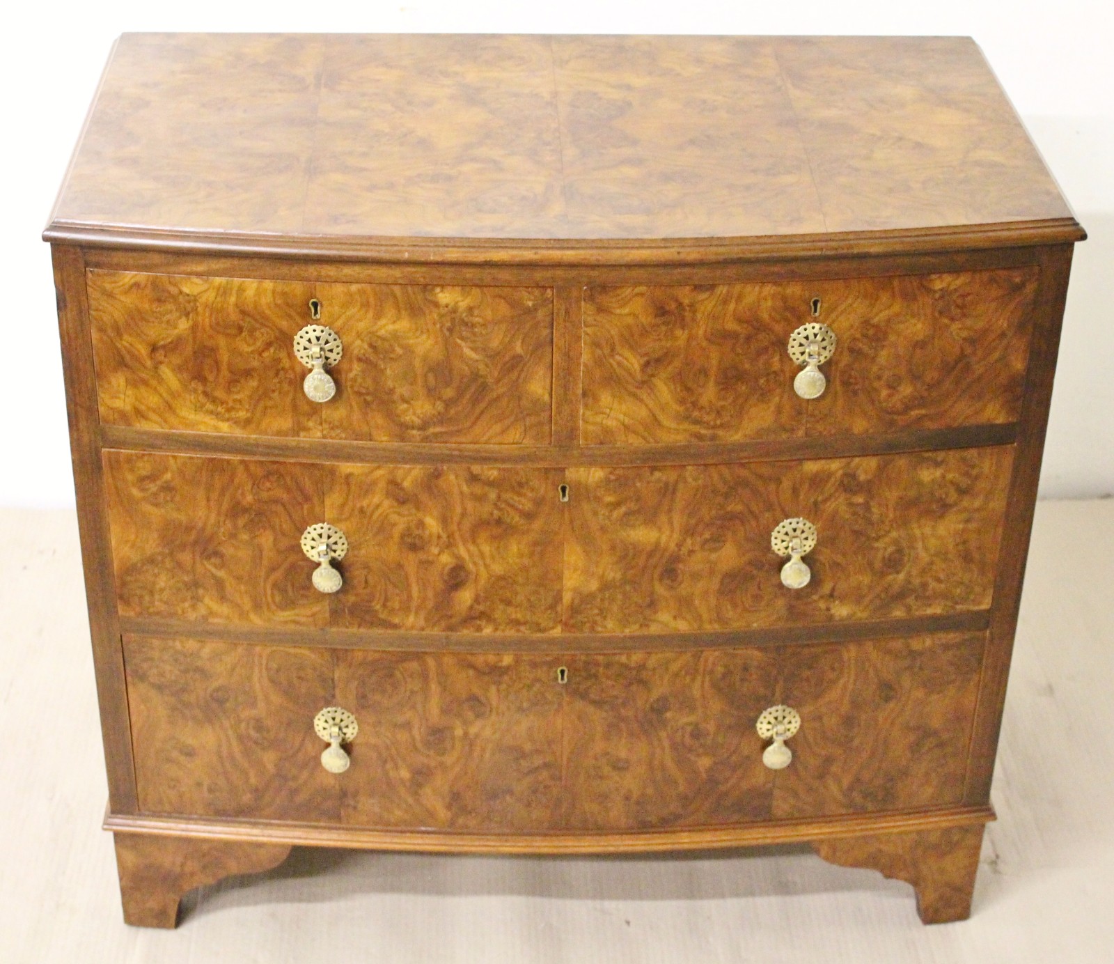 Burr Walnut Bow Chest of Drawers c.1910 (1 of 1)