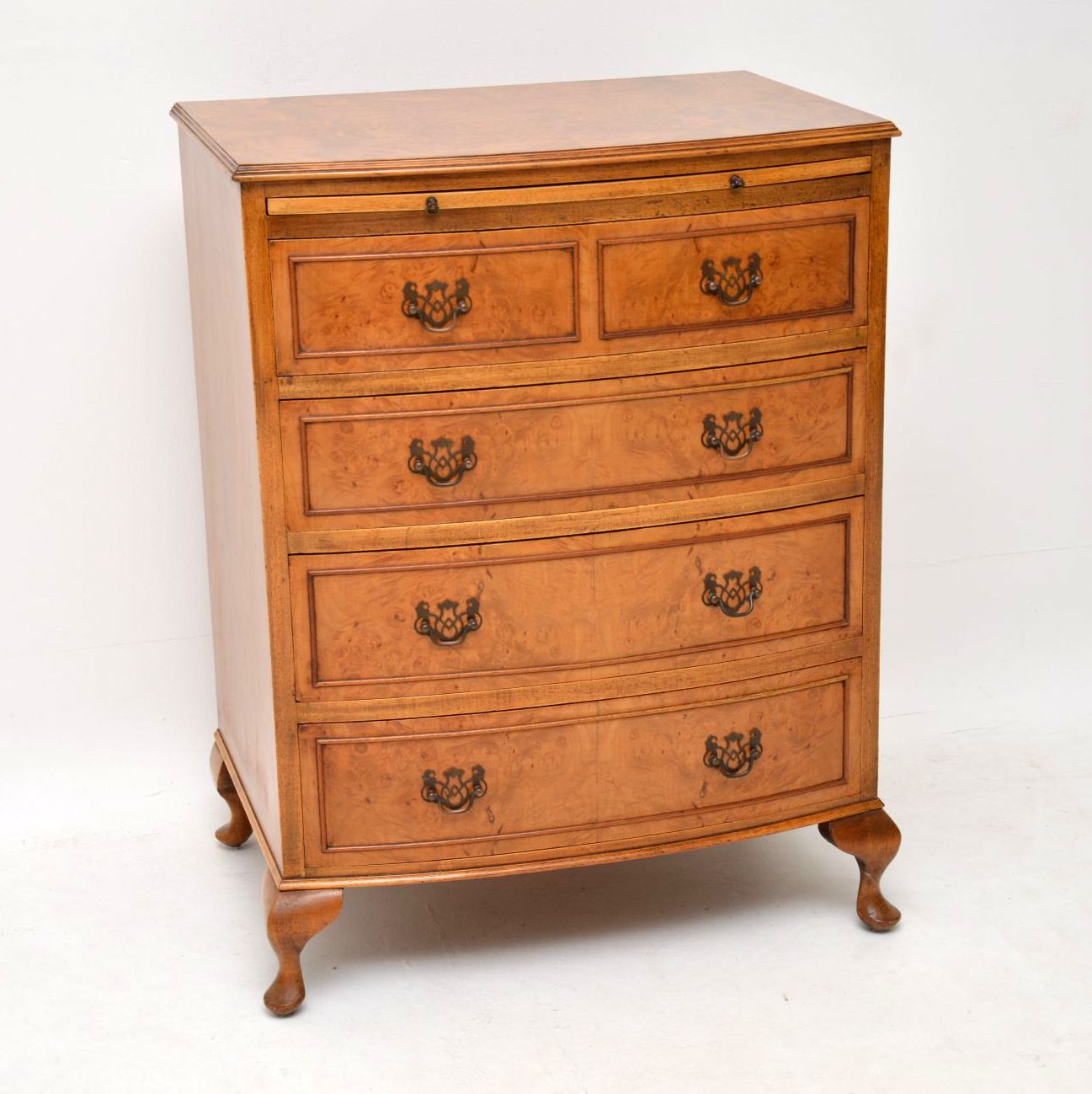 Burr Walnut Bow Front Chest of Drawers c.1930