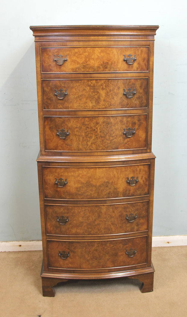 Burr Walnut Bow Front Chest On Chest (1 of 1)