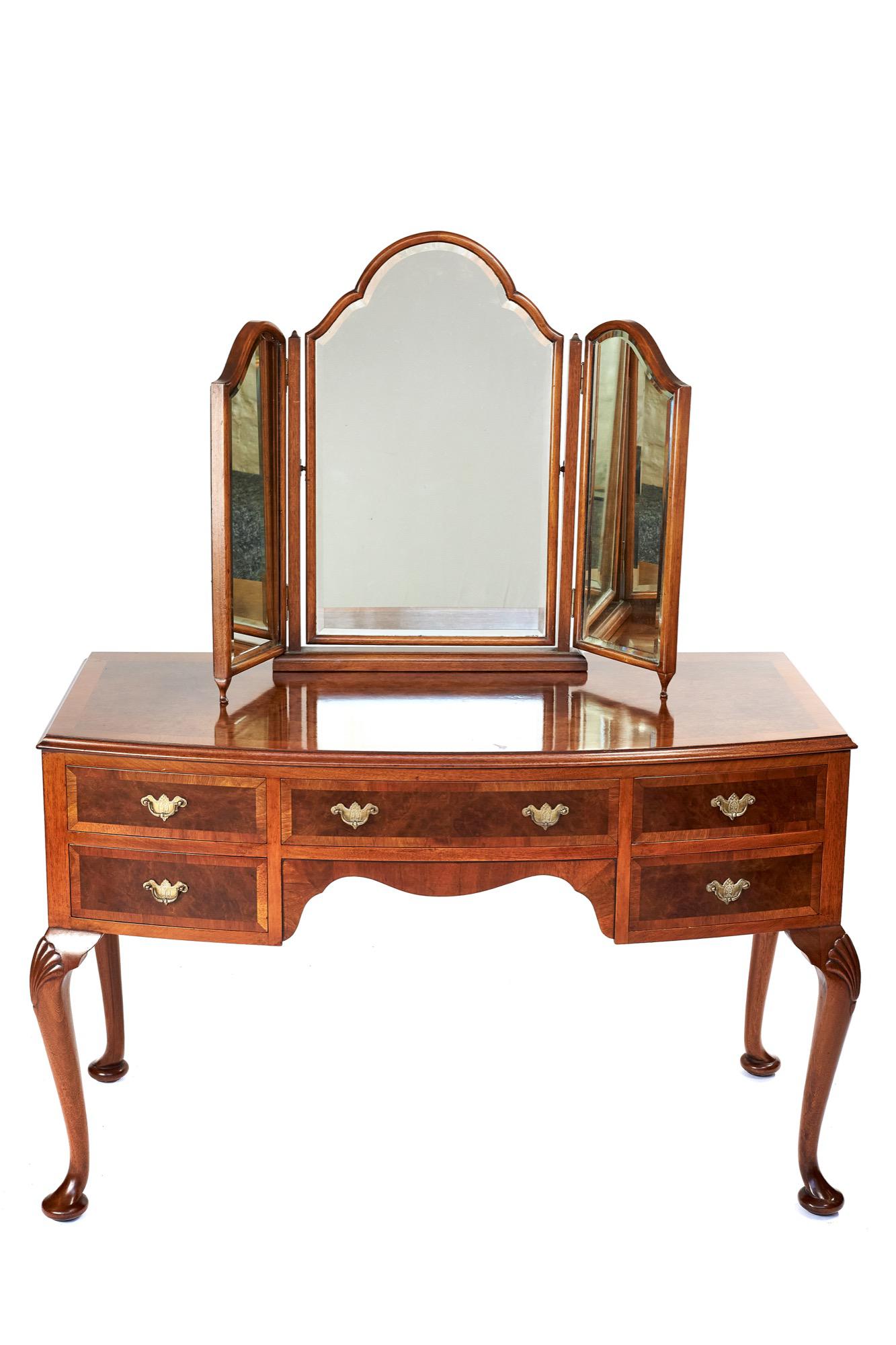 Burr Walnut Bow Front Kneehole Dressing Table c.1930