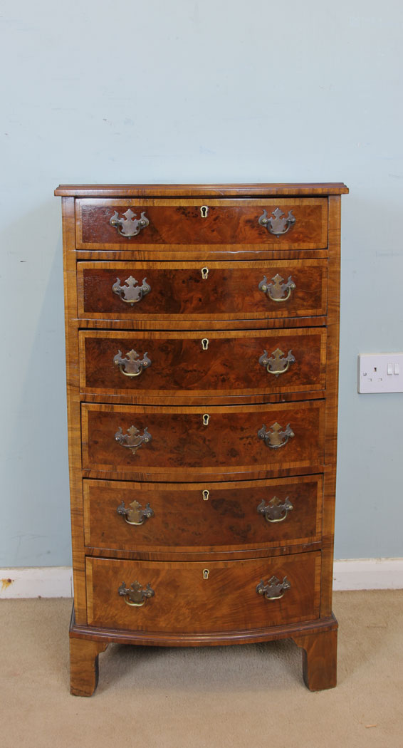 Burr Walnut Bow Front Small Chest of Drawers C.1920