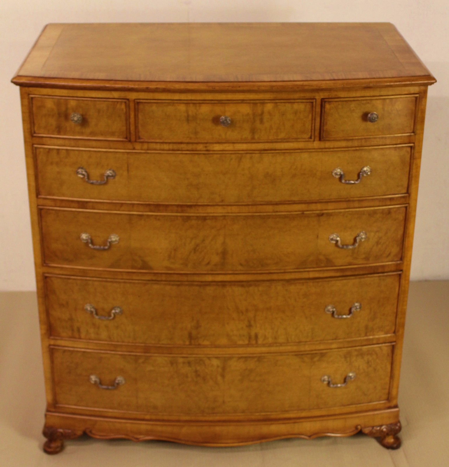 Burr Walnut Bow Fronted Chest of Drawers c.1930