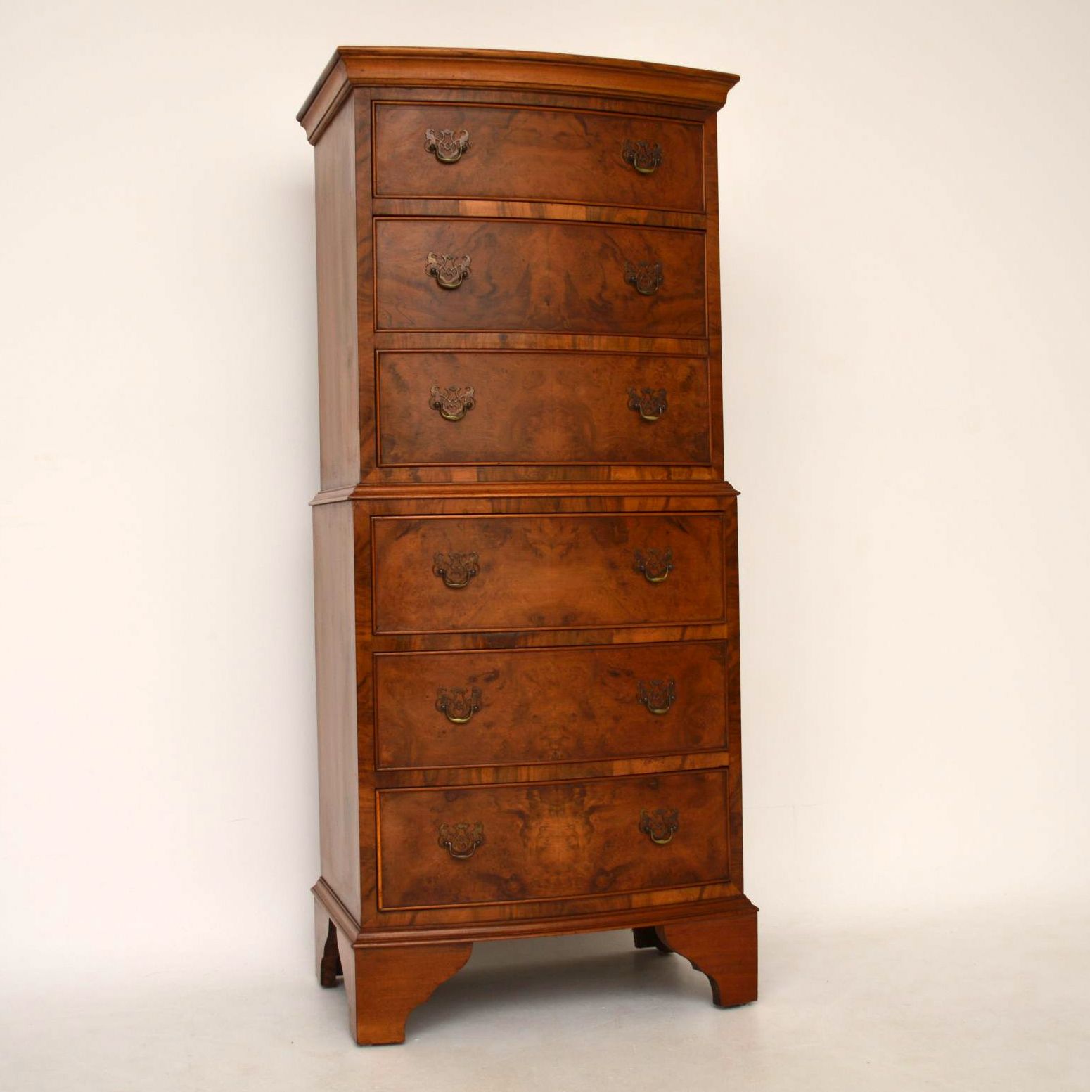 Burr Walnut Bow Fronted Chest on Chest c.1930 (1 of 1)