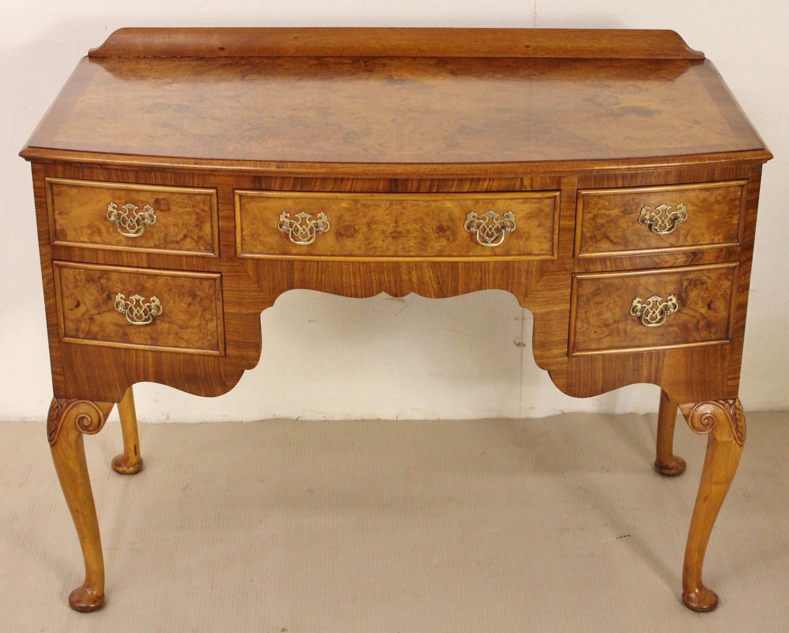 Burr Walnut Bow Fronted Dressing/Writing Table