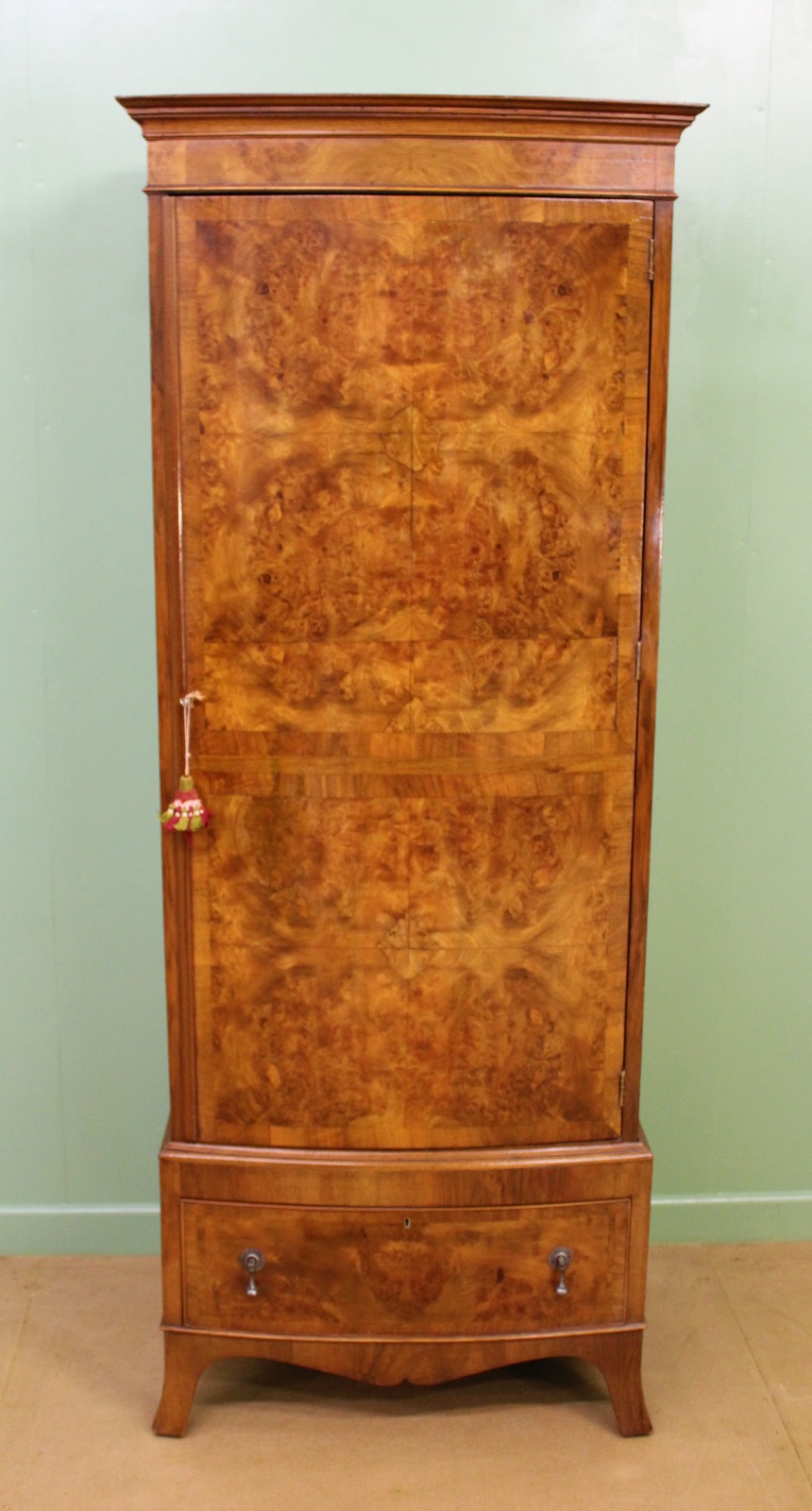 Burr Walnut Bow Fronted Slender Wardrobe c.1910 (1 of 1)