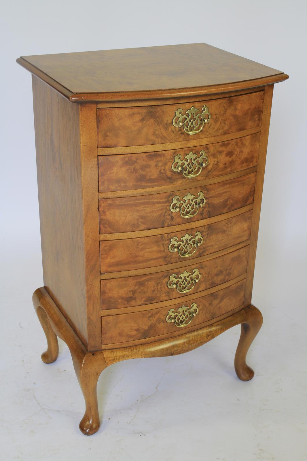 Burr Walnut Bowfront 6 Drawer Chest c.1930