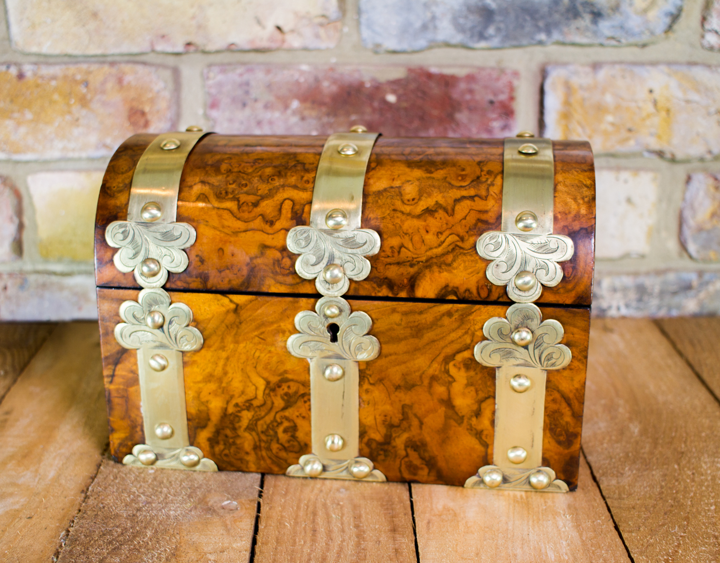 Burr Walnut & Brass Tea Caddy c.1860 (1 of 1)