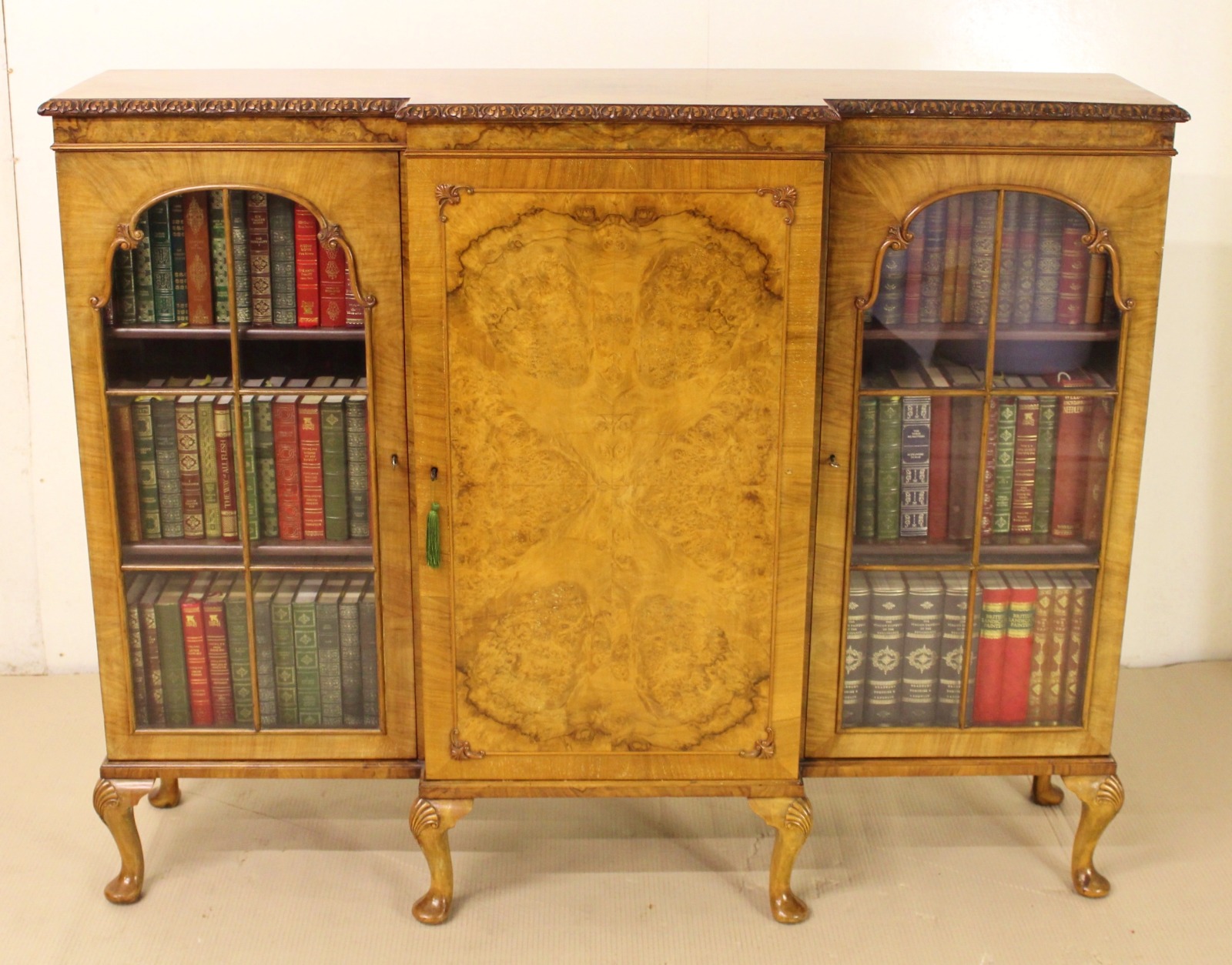 Burr Walnut Break-fronted Bookcase c.1910 (1 of 1)
