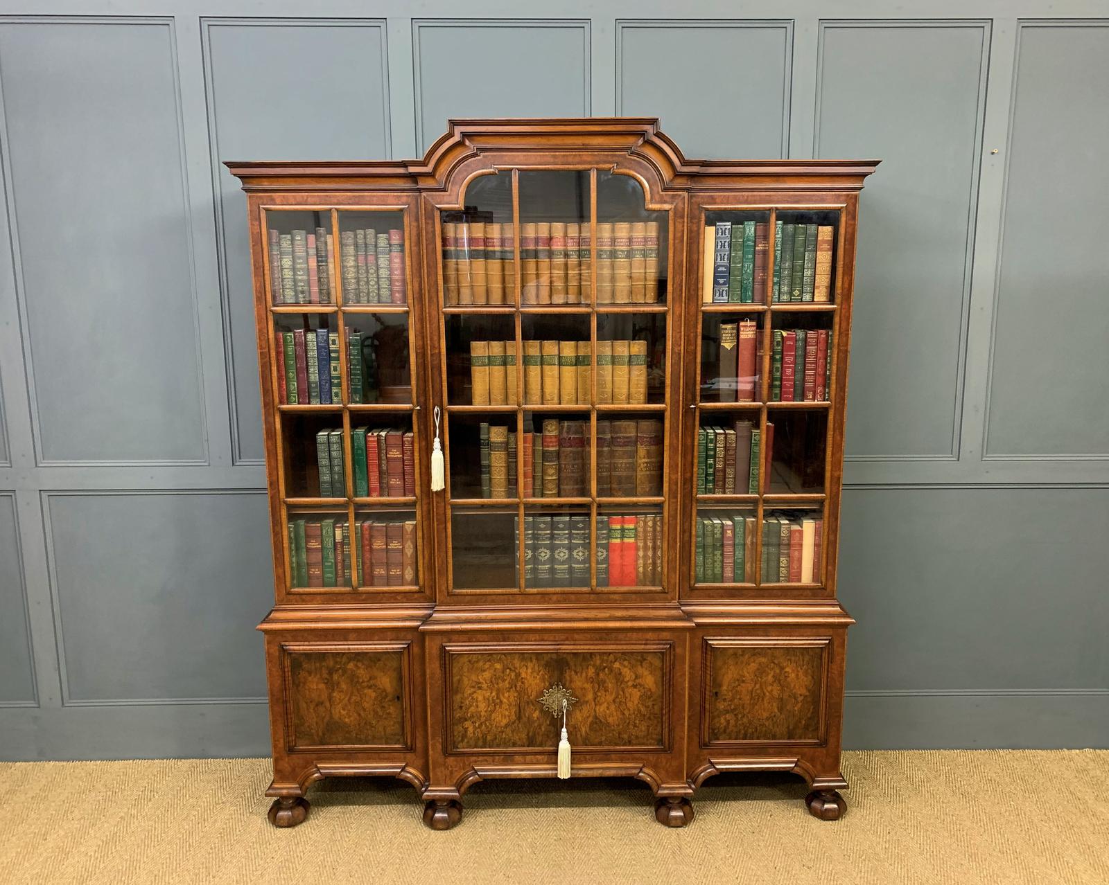 Burr Walnut Breakfront Bookcase