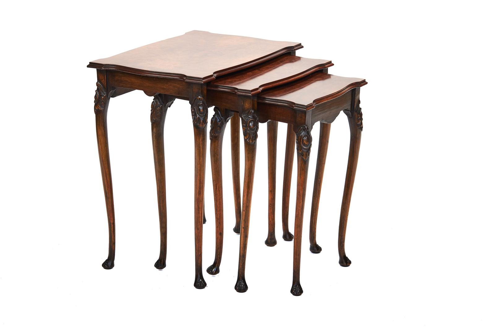 Burr Walnut & Carved Nest 3 Tables c.1930 (1 of 7)