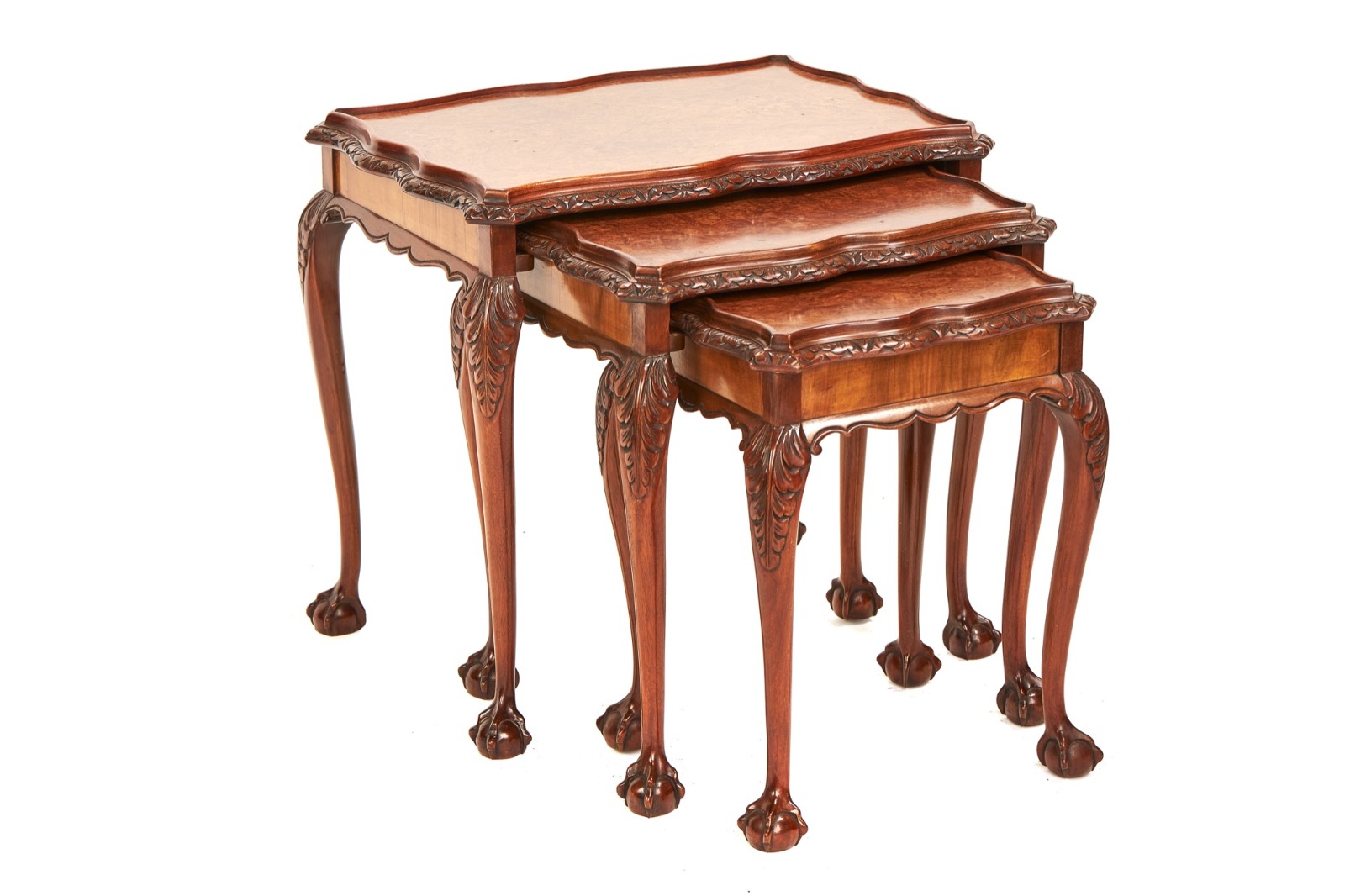 Burr Walnut & Carved Nest 3 Tables circa 1930s (1 of 6)