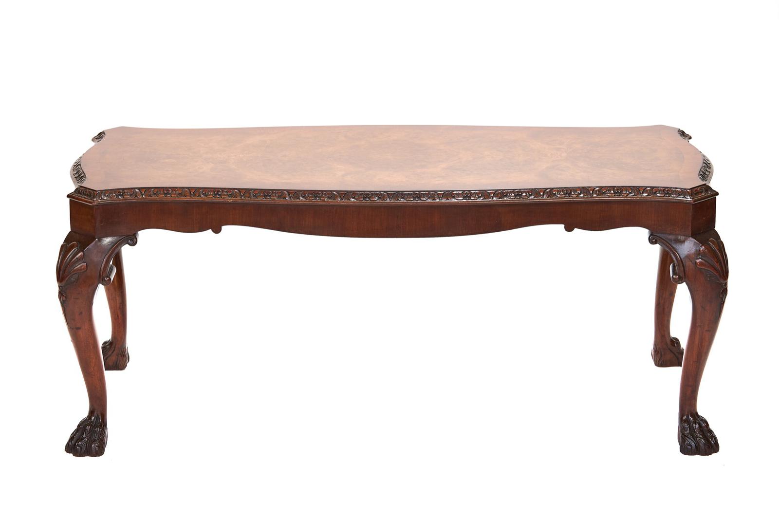 Burr Walnut & Carved Shaped Rectangular Top Coffee Table c.1930