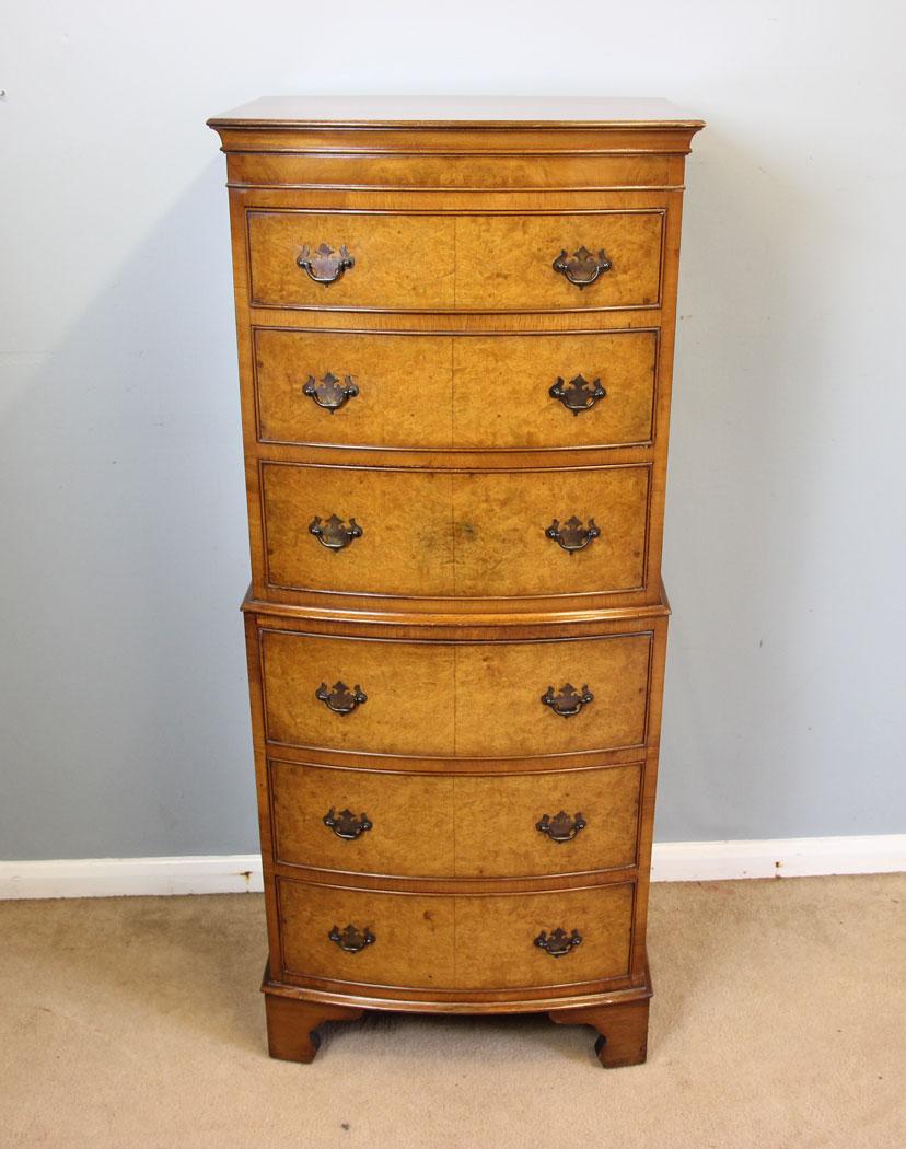 Burr Walnut Chest on Chest of Drawers