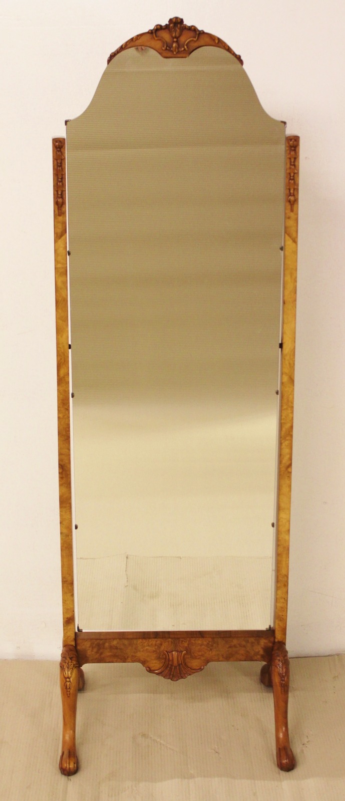 Burr Walnut Cheval Mirror c.1920 (1 of 1)