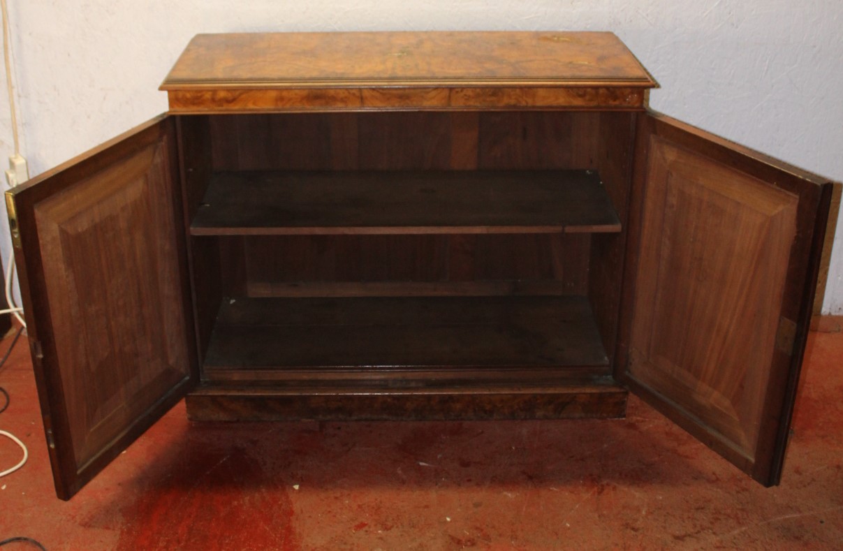 Burr Walnut Chiffonier Base with Shelves c.1905