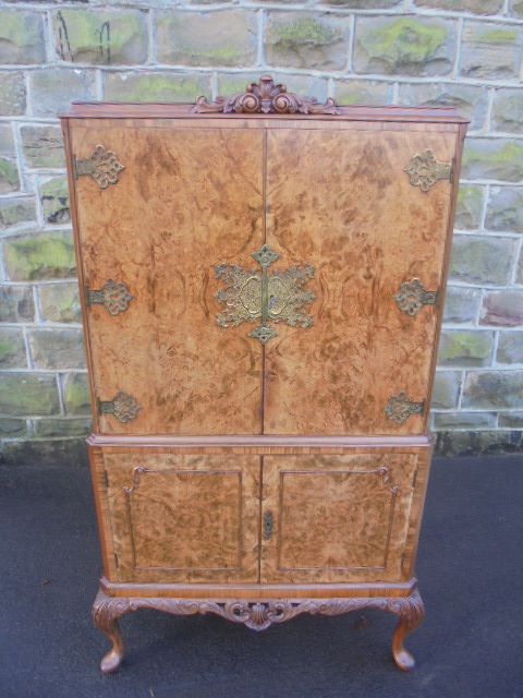 Burr Walnut Cocktail Cabinet / Drinks Cabinet c.1920