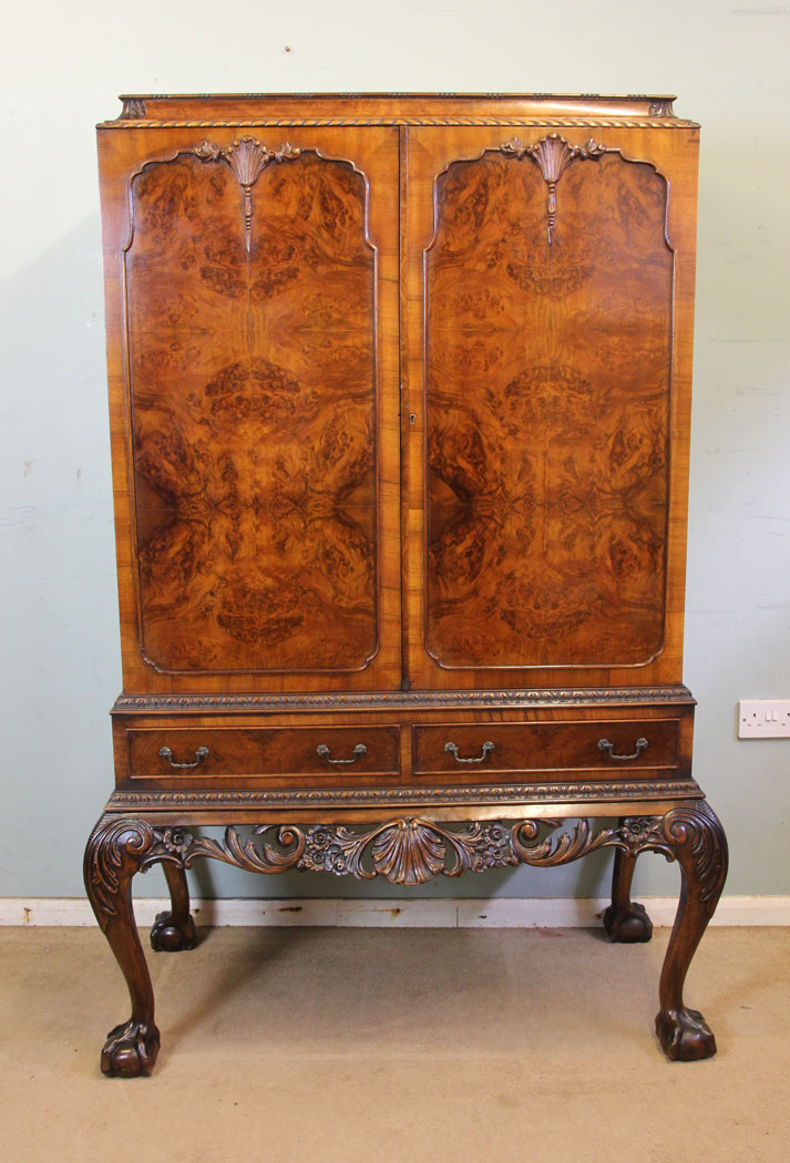 Burr Walnut Cocktail Drinks Cabinet C.1920