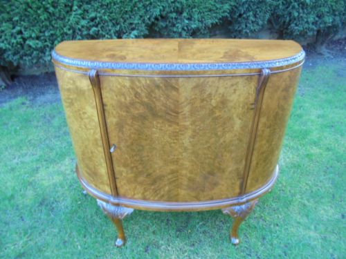 Burr Walnut Demi Lune Side Cabinet c.1920