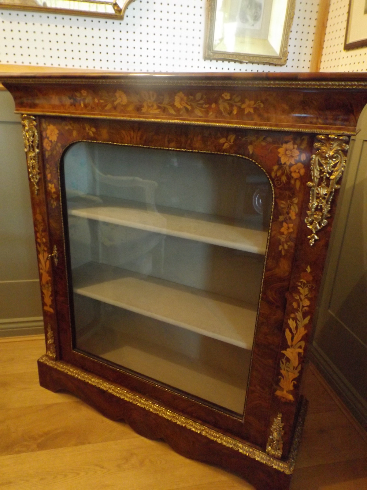 Burr Walnut Display Pier Cabinet Dutch Style Marquetry
