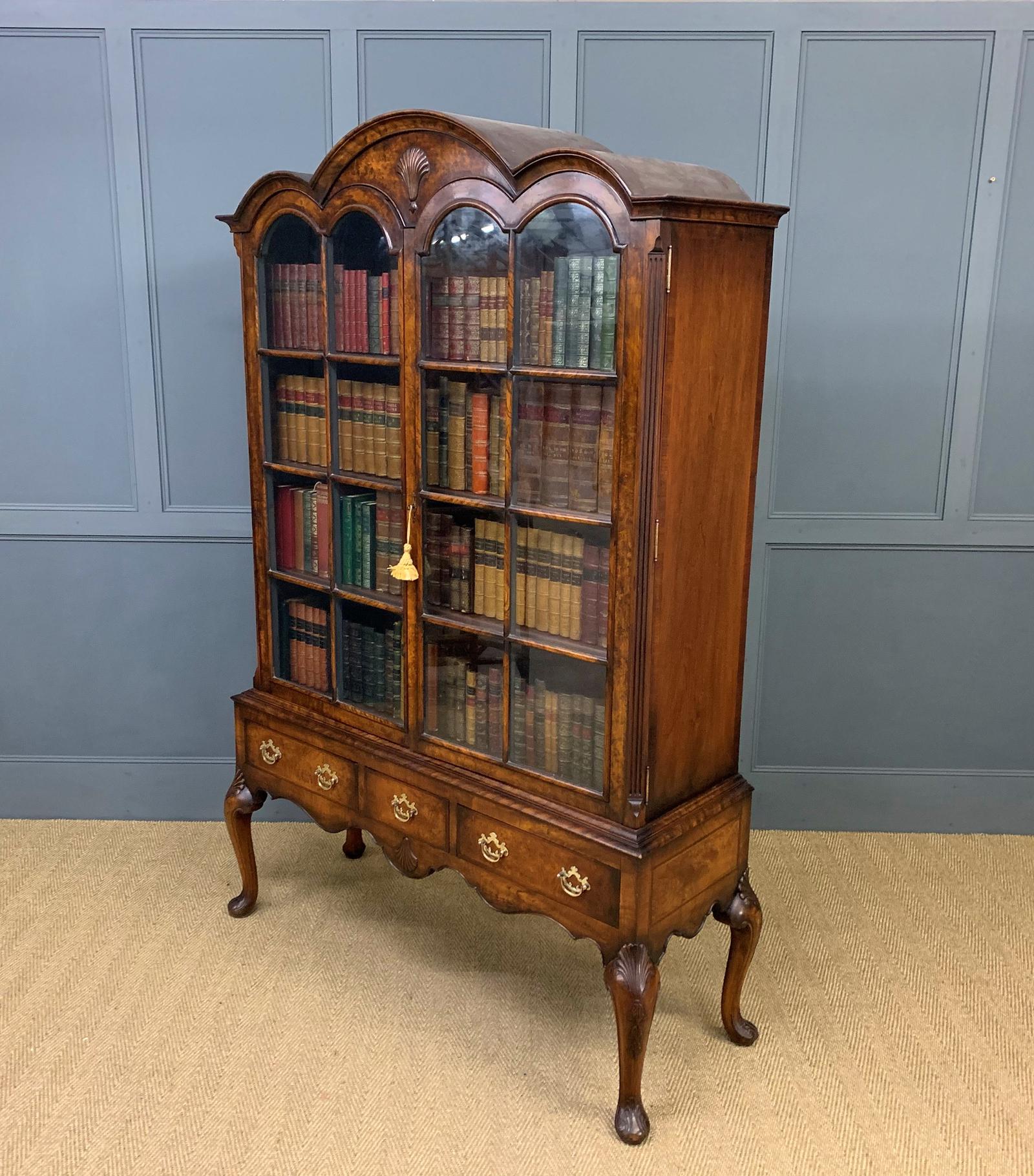 Burr Walnut Dome Topped Bookcase