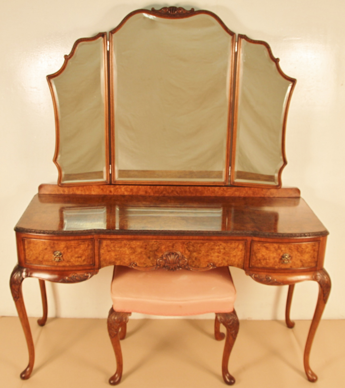 Burr Walnut Dressing Table and Stool c.1900 (1 of 1)