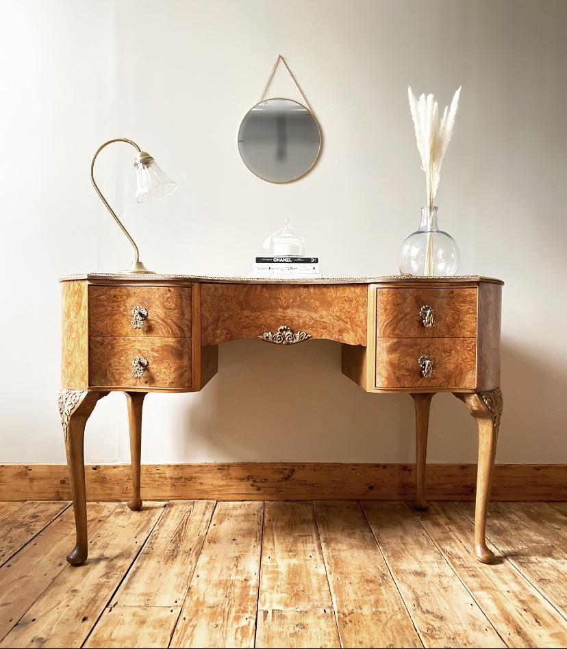 Burr Walnut Dressing Table / Desk / Vanity Table / Sideboard