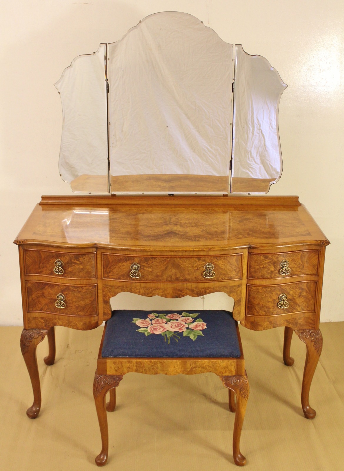 Burr Walnut Dressing Table & Stool c.1920 (1 of 15)