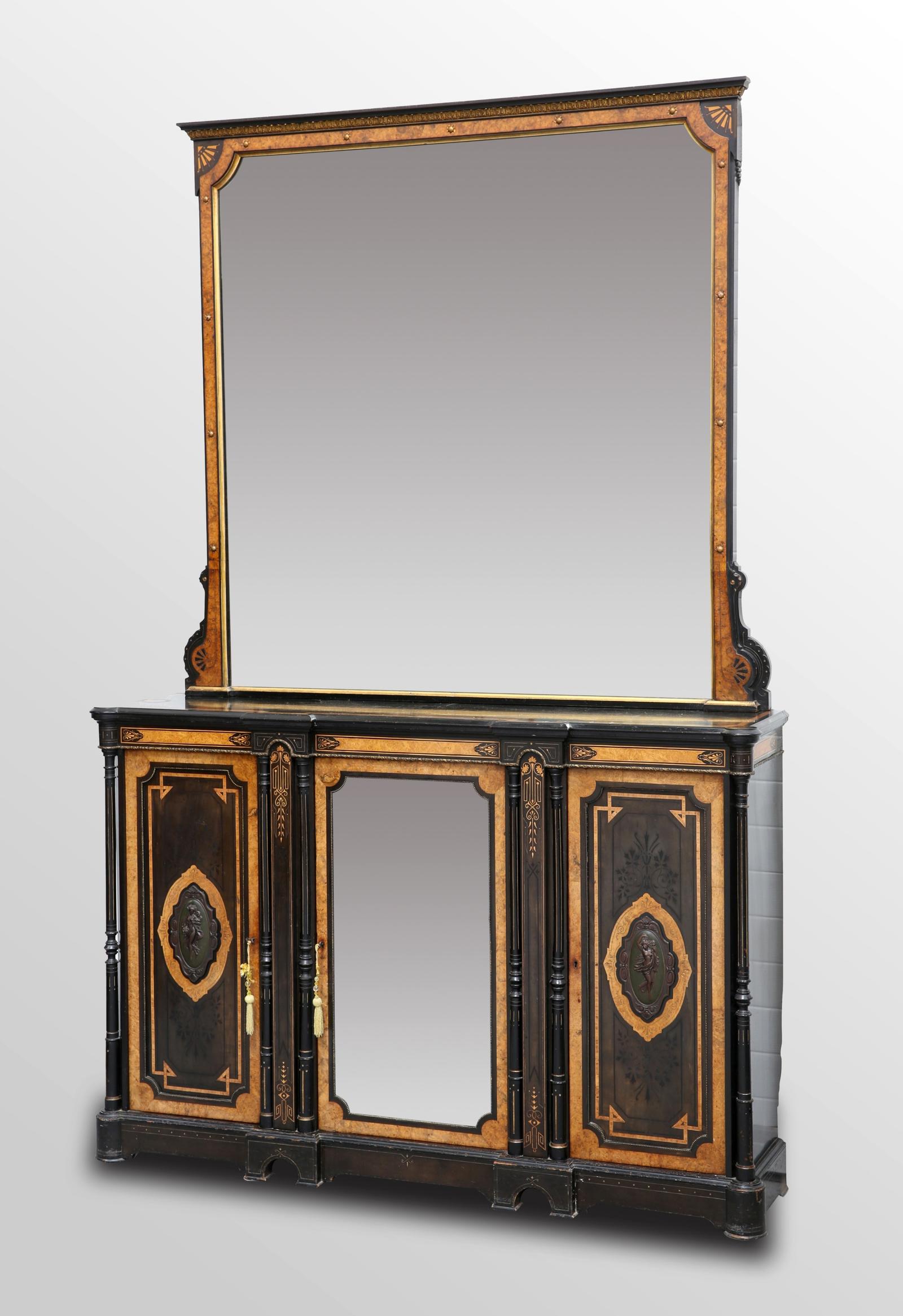 Burr Walnut & Ebonised Mirror Back Credenza by H.Ogden Manchester