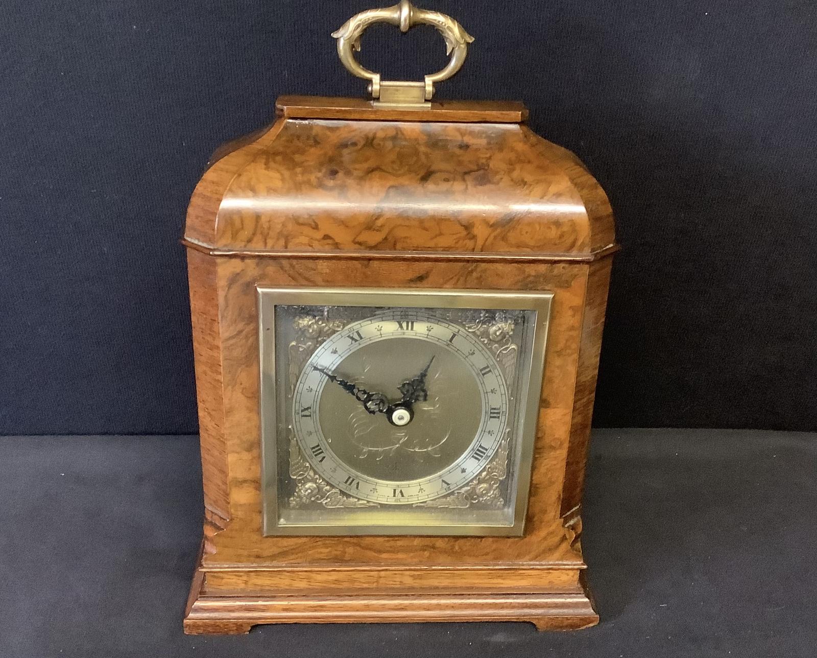 Burr Walnut Elliott Mantle Clock.
