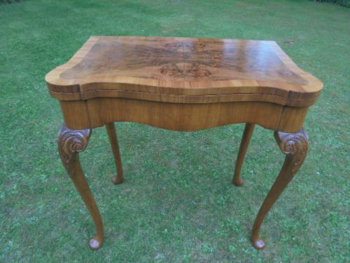 Burr Walnut Fold Over Games Table / Card Table c.1920