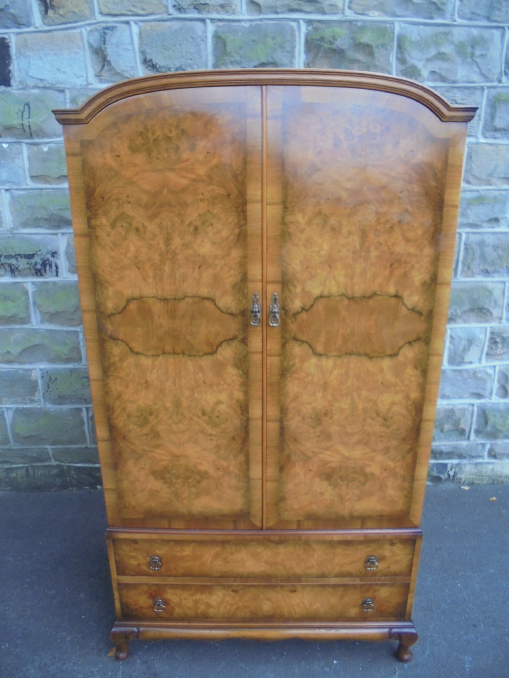 Burr Walnut Gentleman's Wardrobe Armoire c.1920