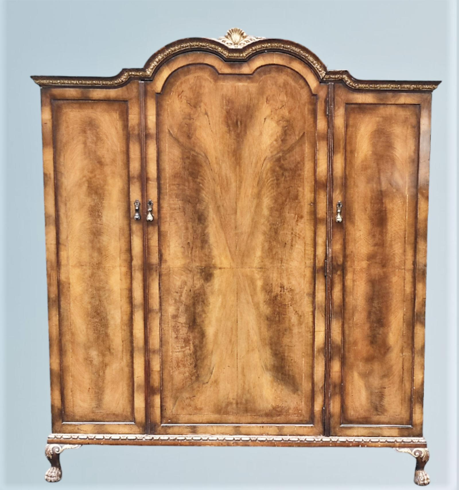 Burr Walnut & Gilt Decorated Triple Door Wardrobe (1 of 16)