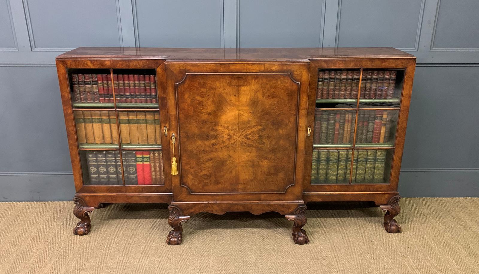 Burr Walnut Glazed Breakfront Bookcase (1 of 16)