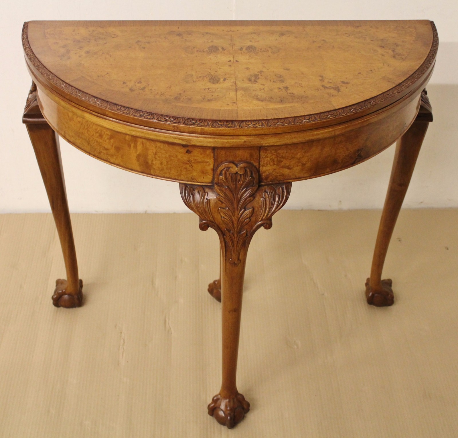 Burr Walnut Half Moon Card Table c.1920 (1 of 1)