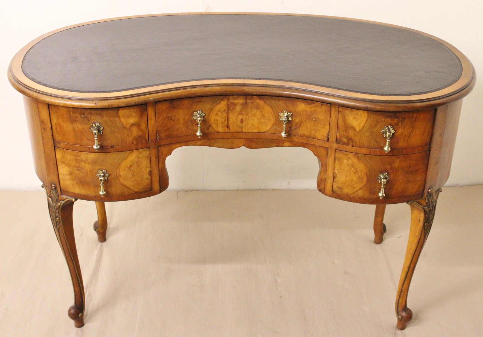 Burr Walnut Kidney Shaped Desk c.1895 (1 of 1)