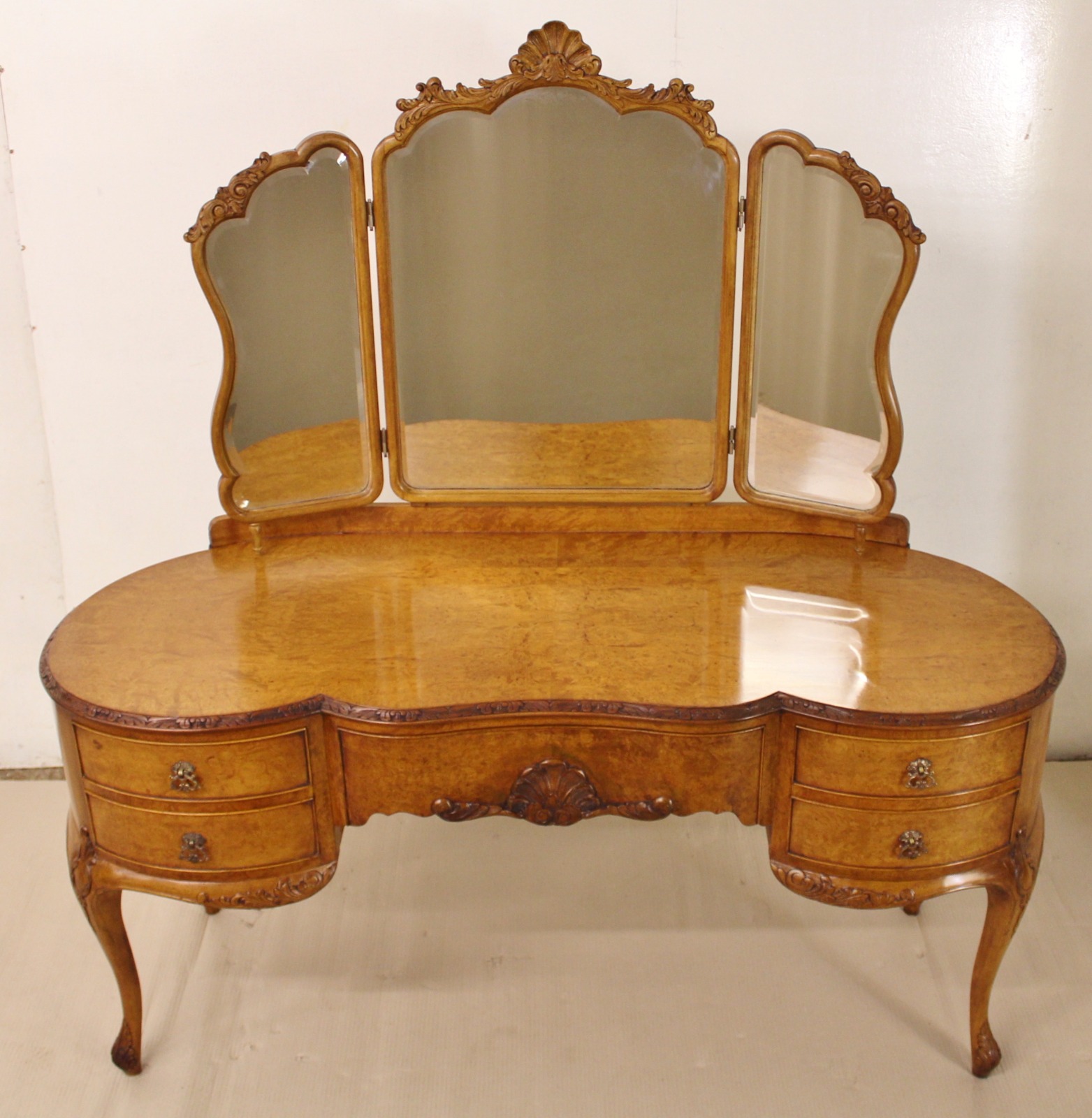 Burr Walnut Kidney Shaped Dressing Table c.1920 (1 of 1)