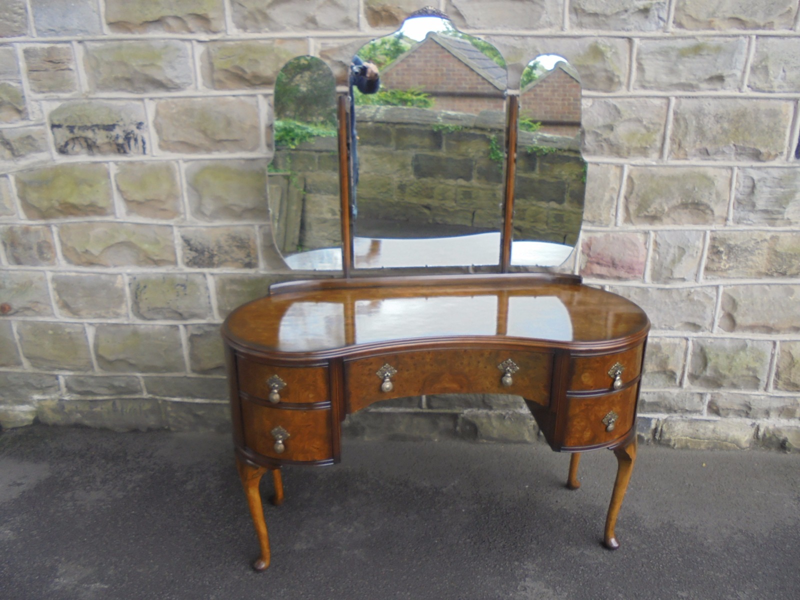 Burr Walnut Kidney Shaped Dressing Table c.1920