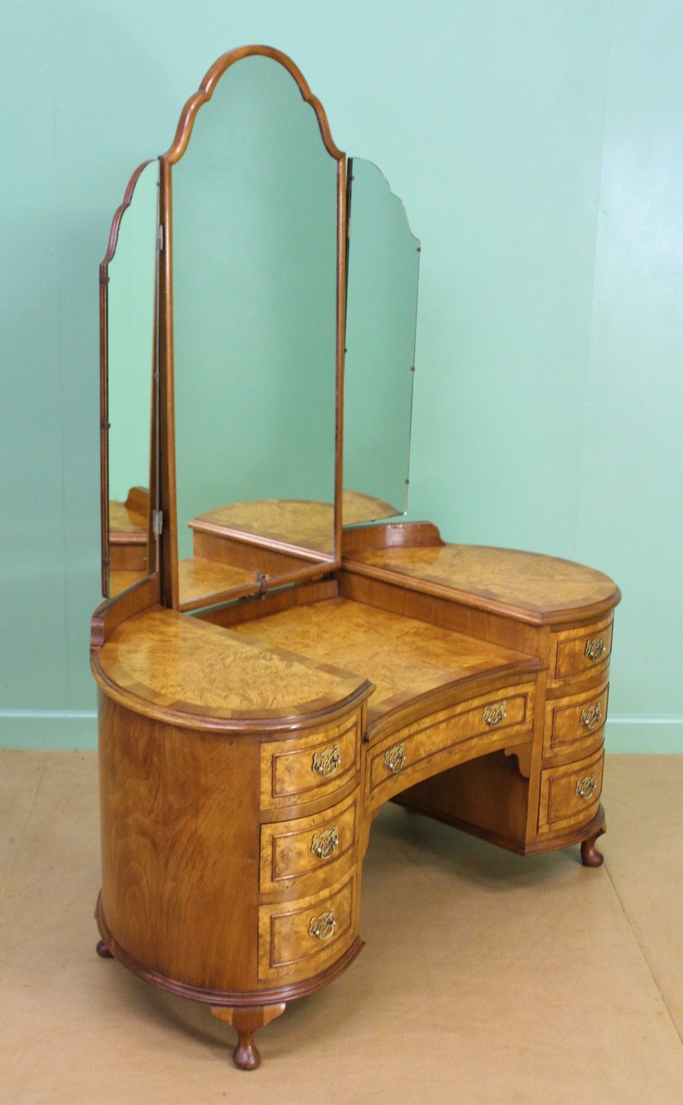 Burr Walnut Kidney Shaped Dressing Table c.1925 (1 of 1)