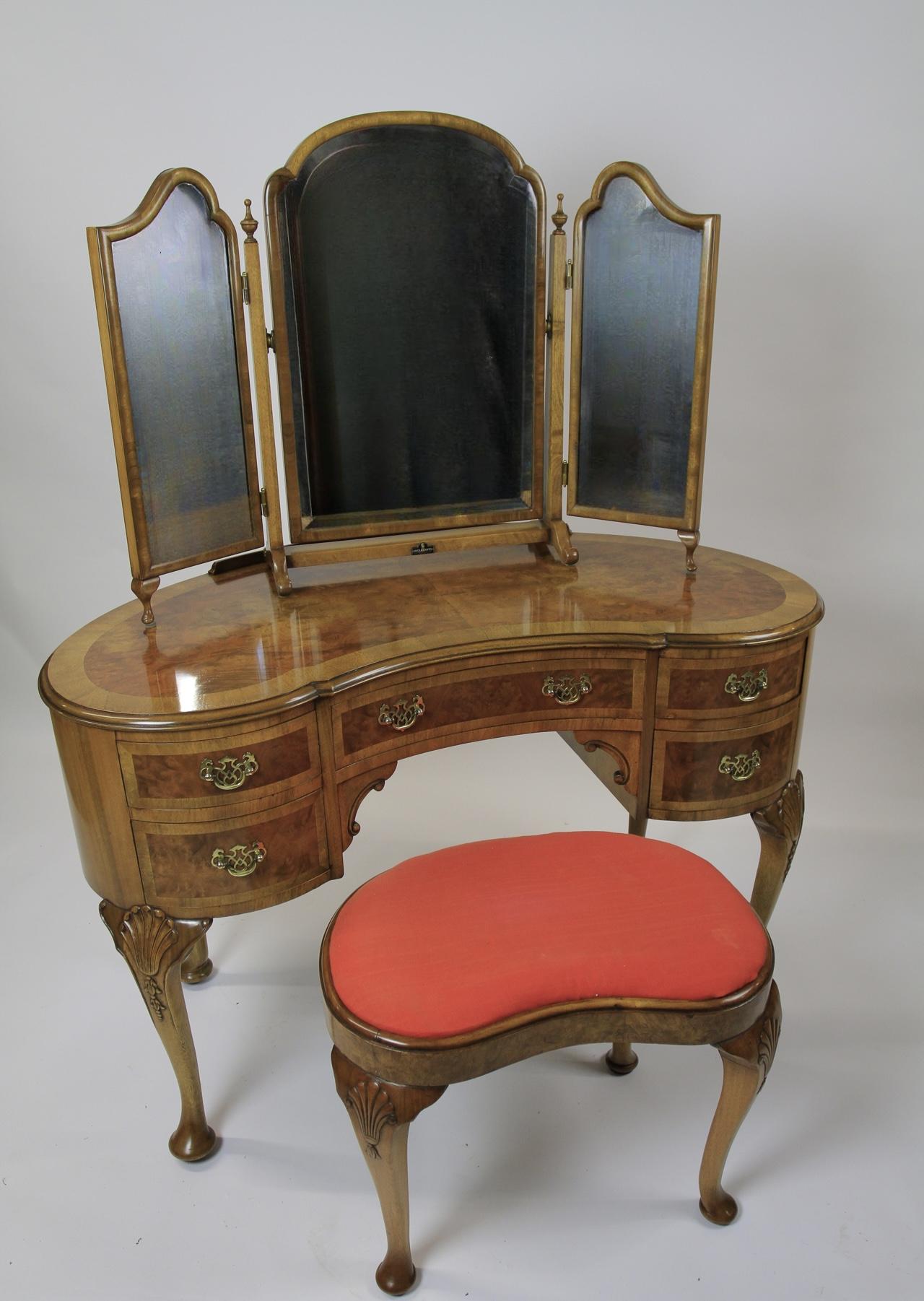 Burr Walnut Kidney Shaped Dressing Table & Stool 1930s