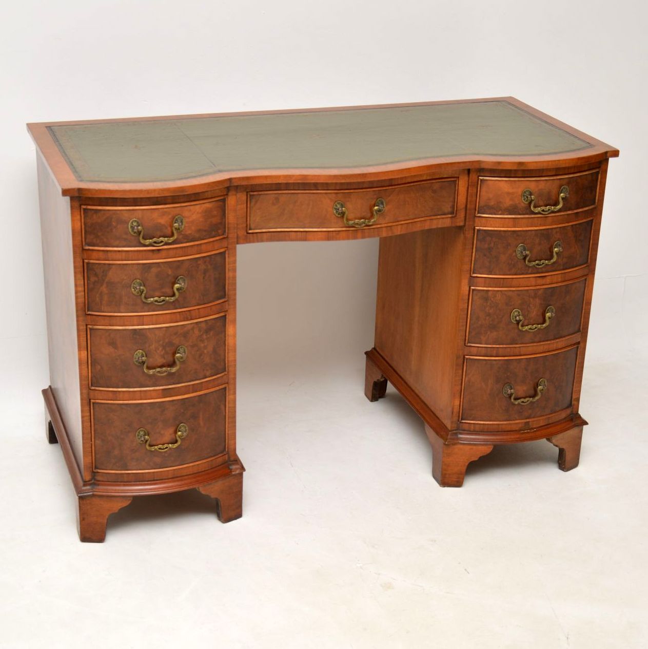Burr Walnut Leather Top Pedestal Desk c.1930 (1 of 1)
