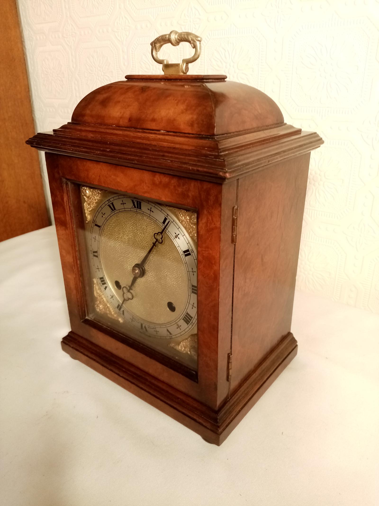 Burr Walnut Mantel Clock. Elliottt of London