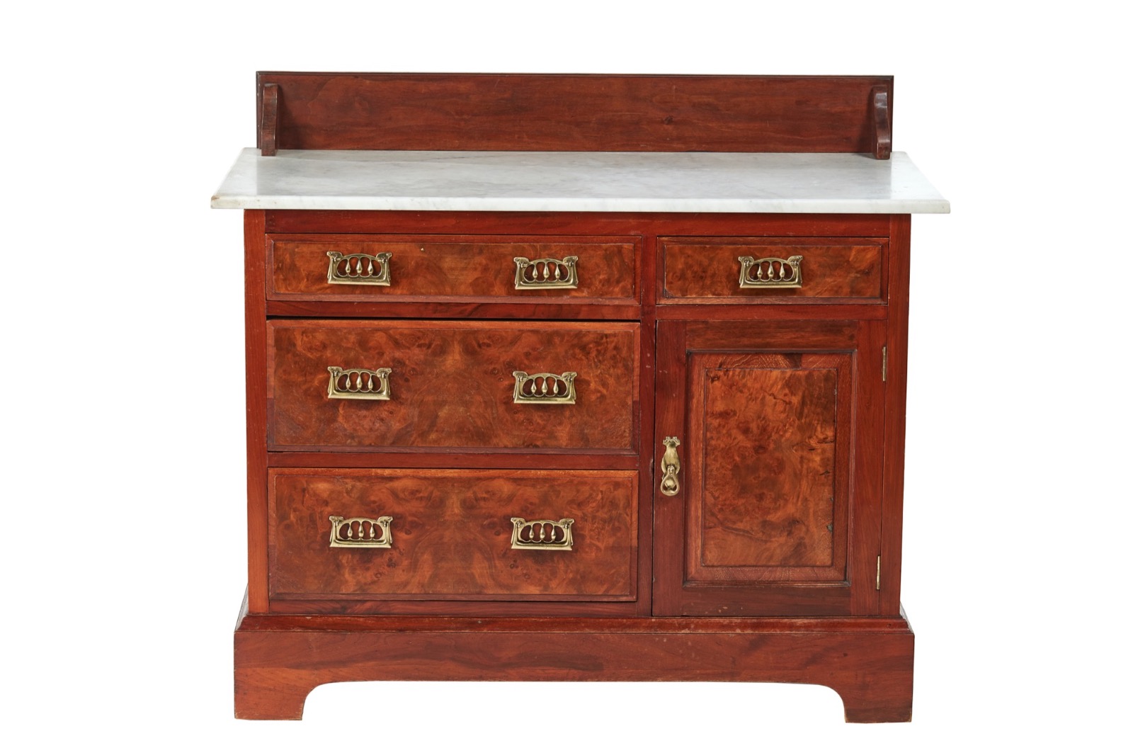 Burr Walnut Marble Top Chest of Drawers c.1880