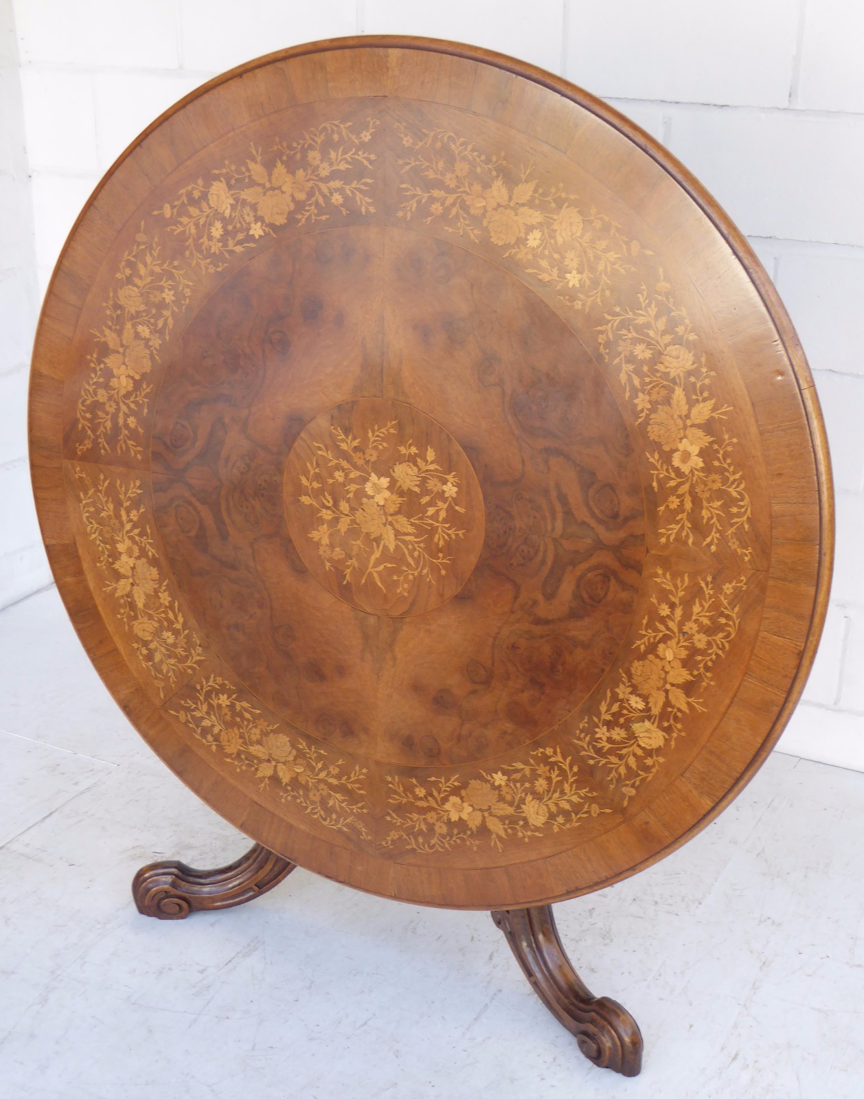 Burr Walnut & Marquetry Circular Breakfast Table C.1900