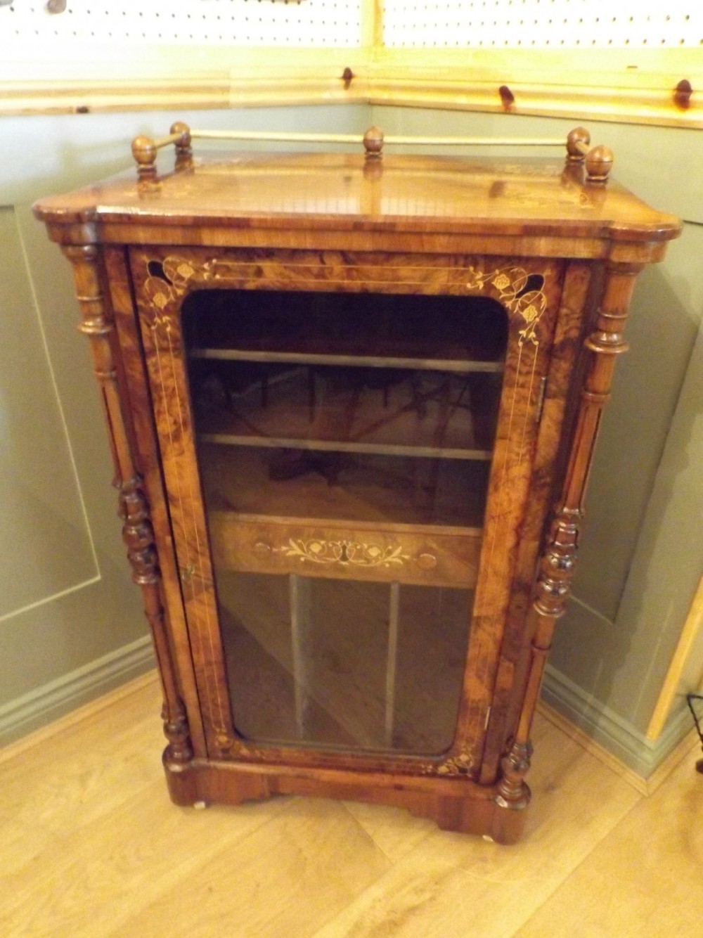 Burr Walnut & Marquetry Inlaid Music Cabinet c.1880