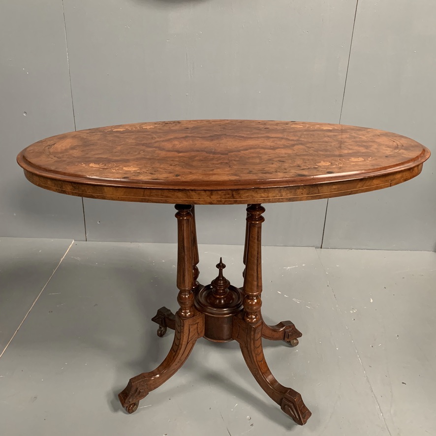 Burr Walnut & Marquetry Oval Centre Table c.1880