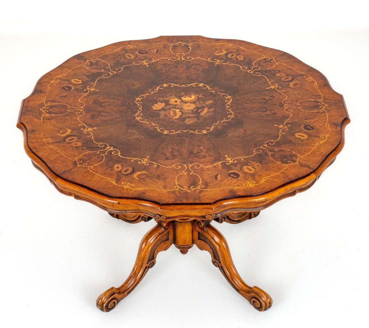 Burr Walnut Marquetry Victorian Style Centre Table (1 of 7)