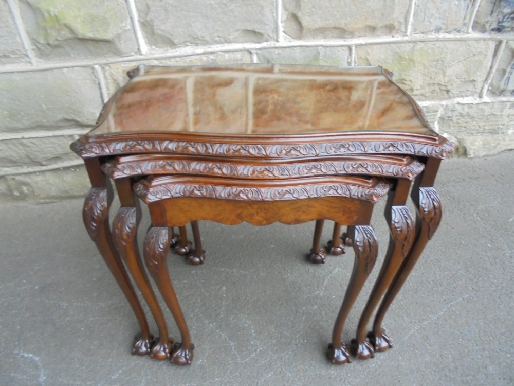 Burr Walnut Nest of 3 Coffee Tables c.1920