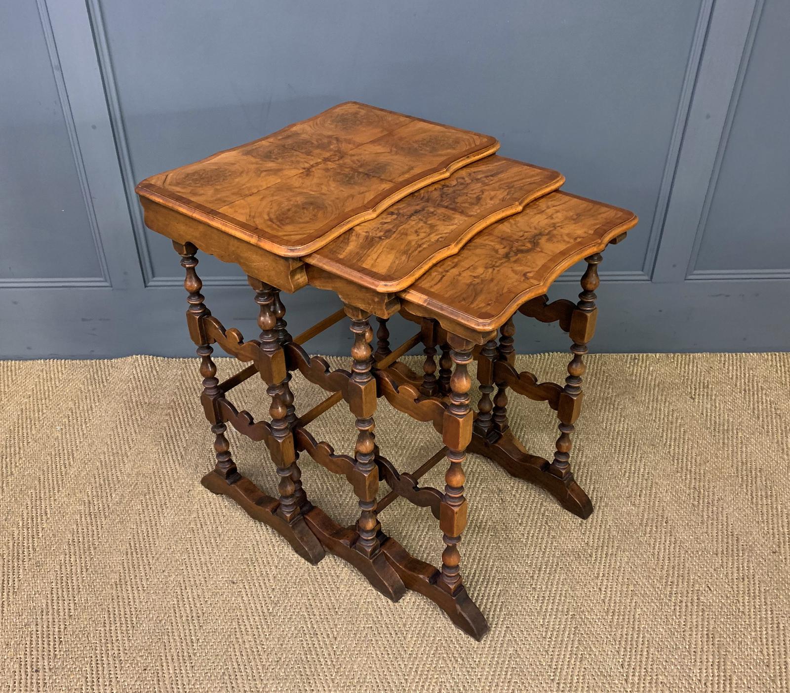 Burr Walnut Nest of 3 Tables c.1900